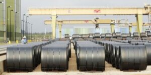 Steel coils at the ThyssenKrupp Steel USA factory are pictured